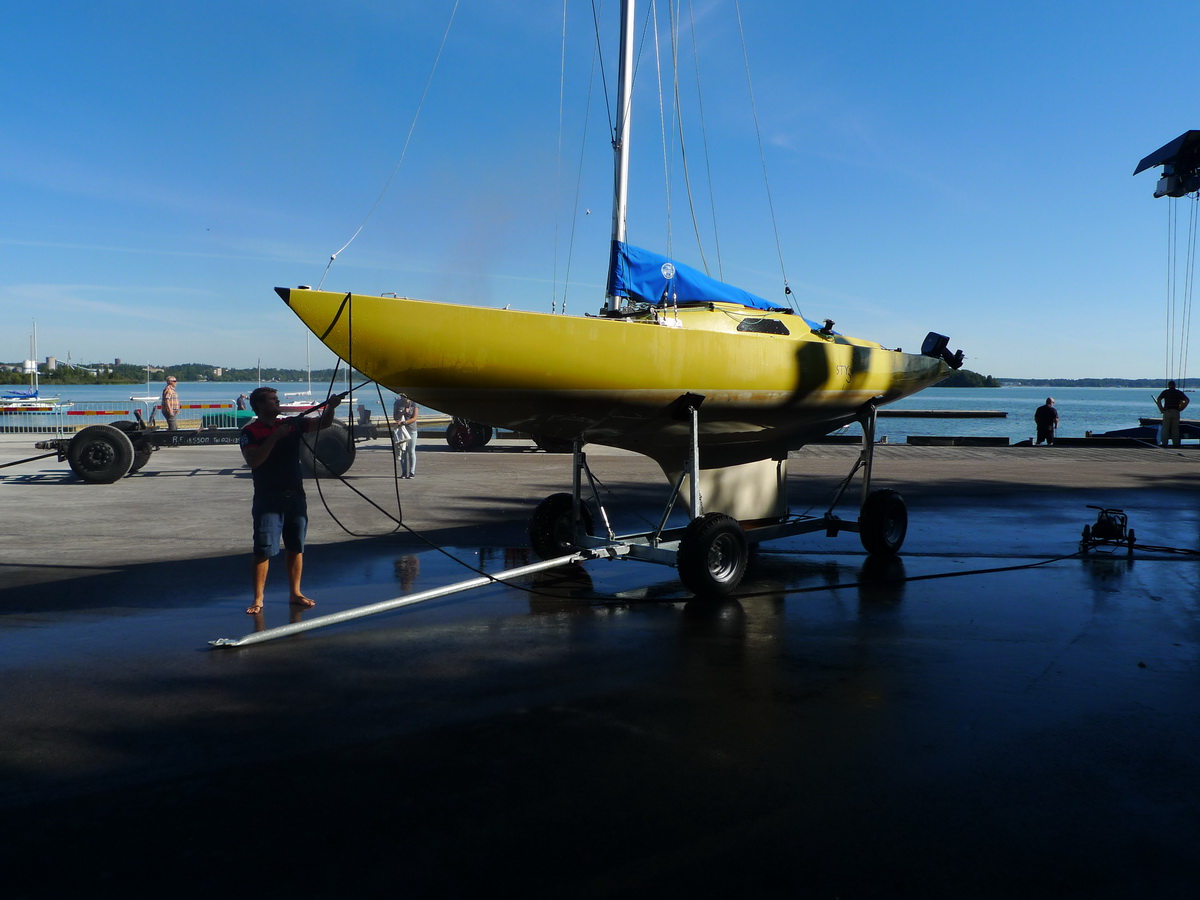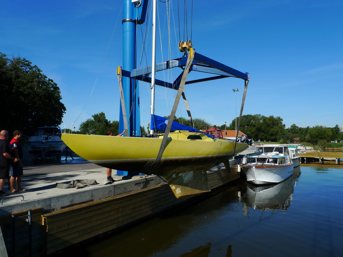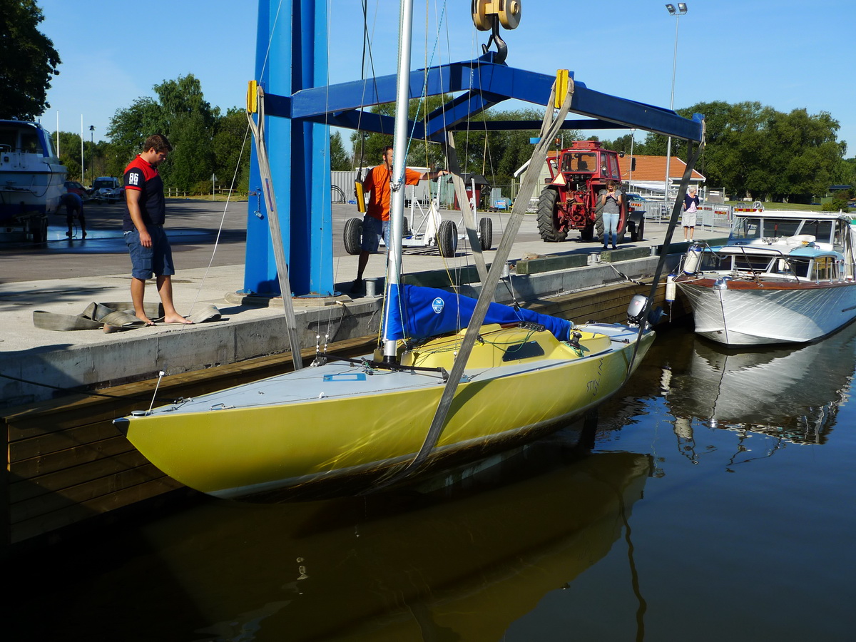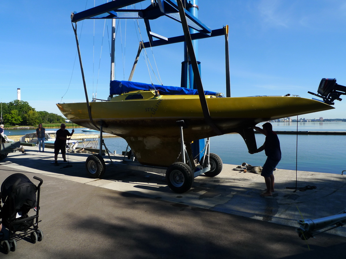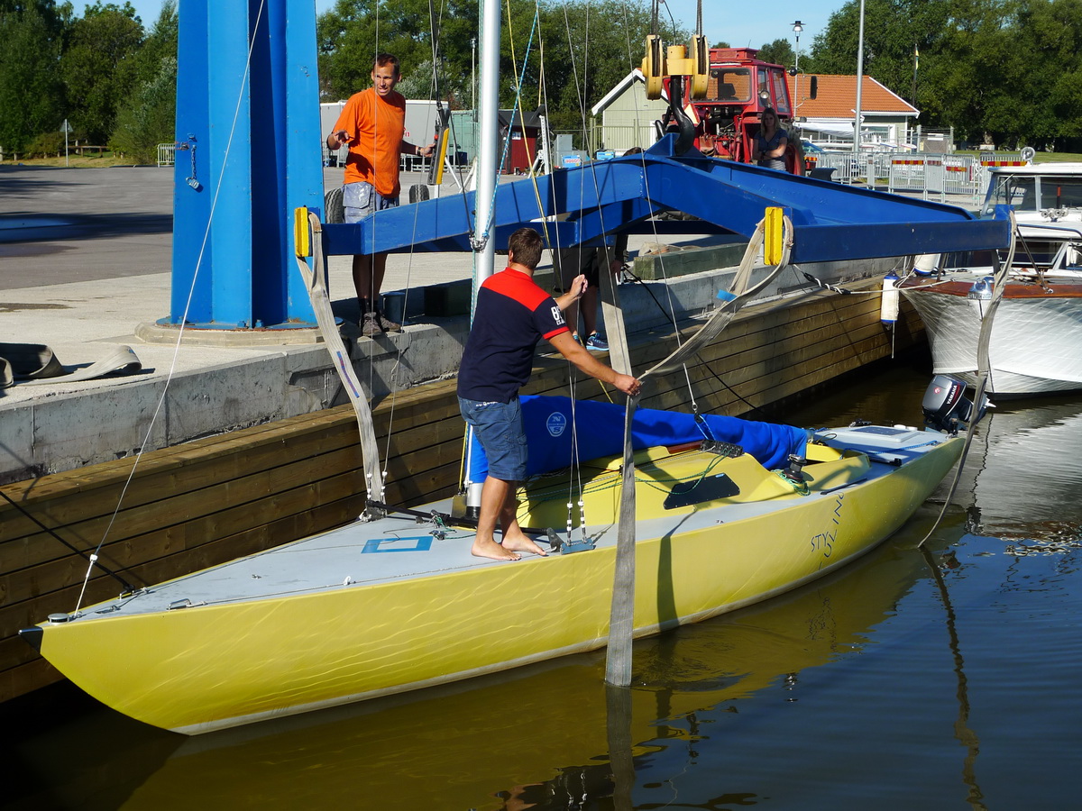 Försiktigt upp ur vattnet, kolla att båten väger jämt.
